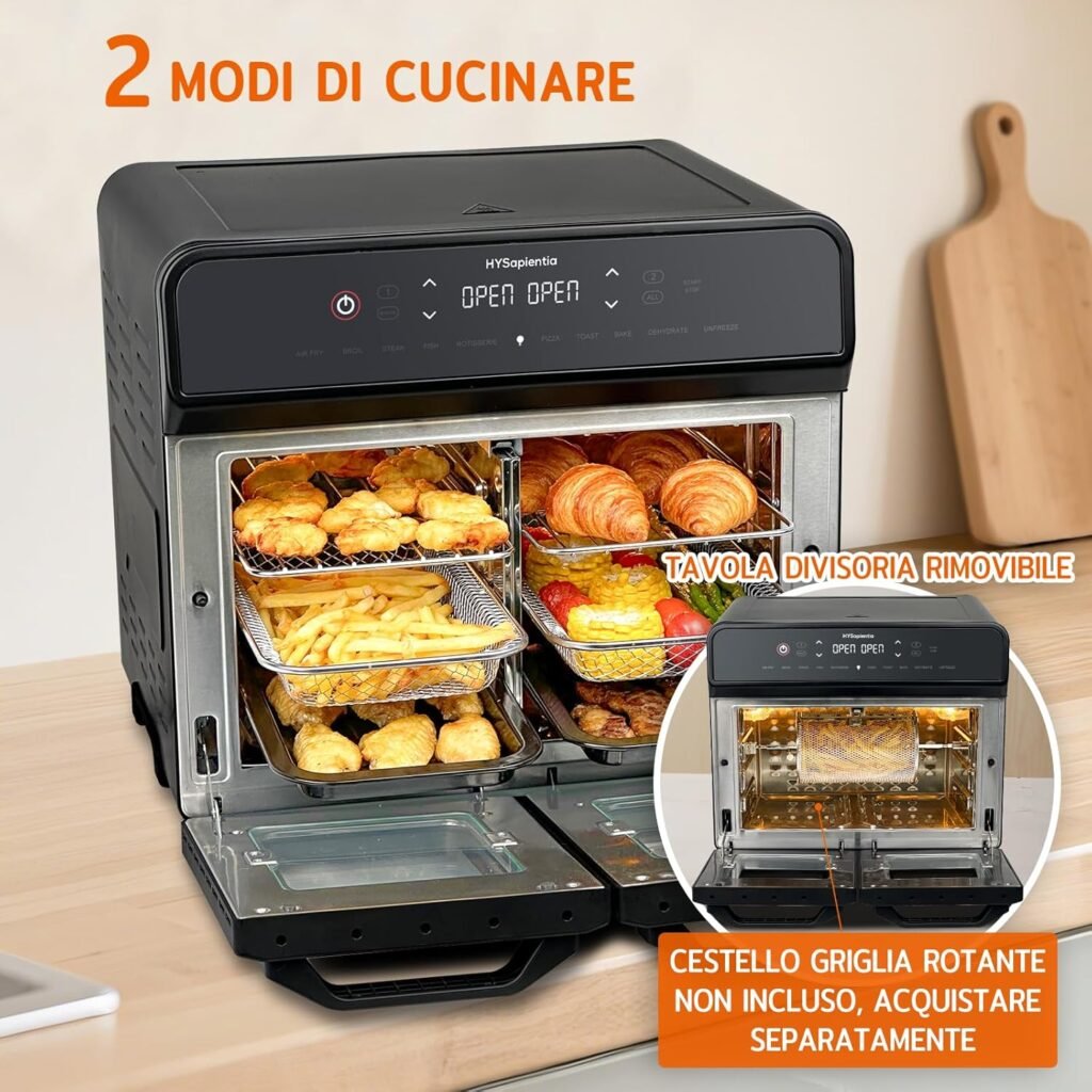 Un solo elettrodomestico per tutto: forno, friggitrice ad aria e girarrosto. Cucino meglio e in modo più sano.